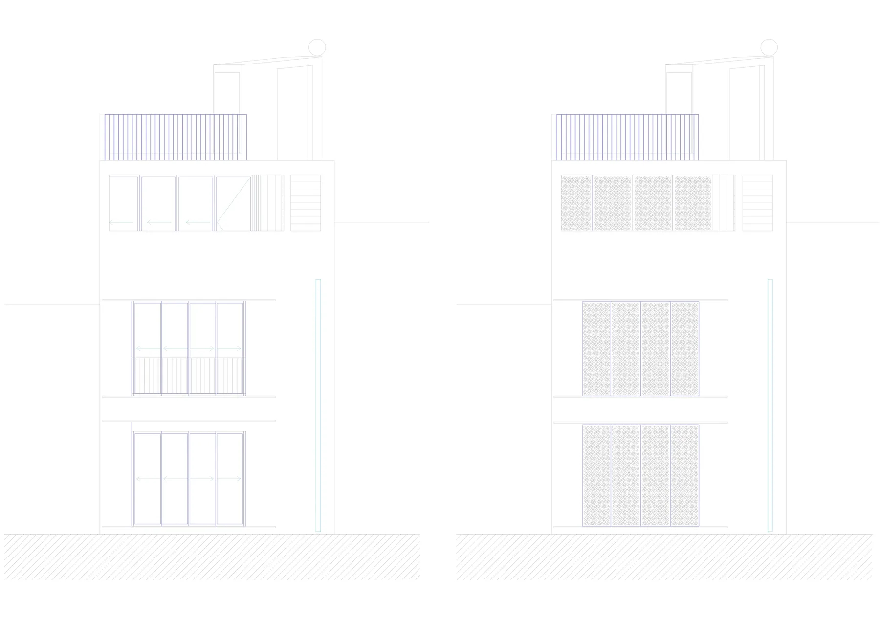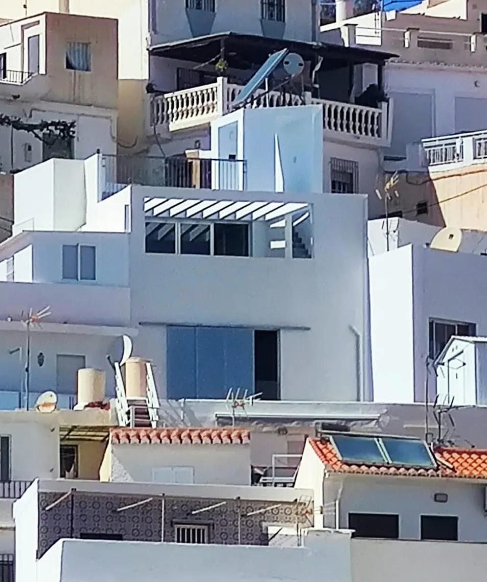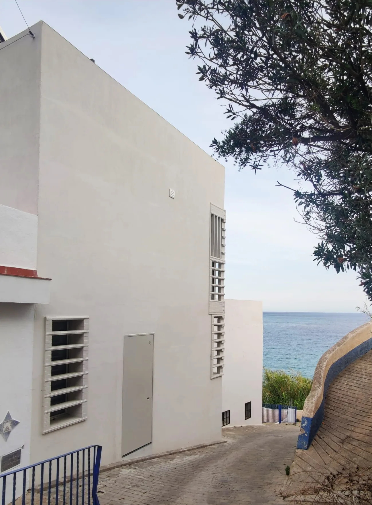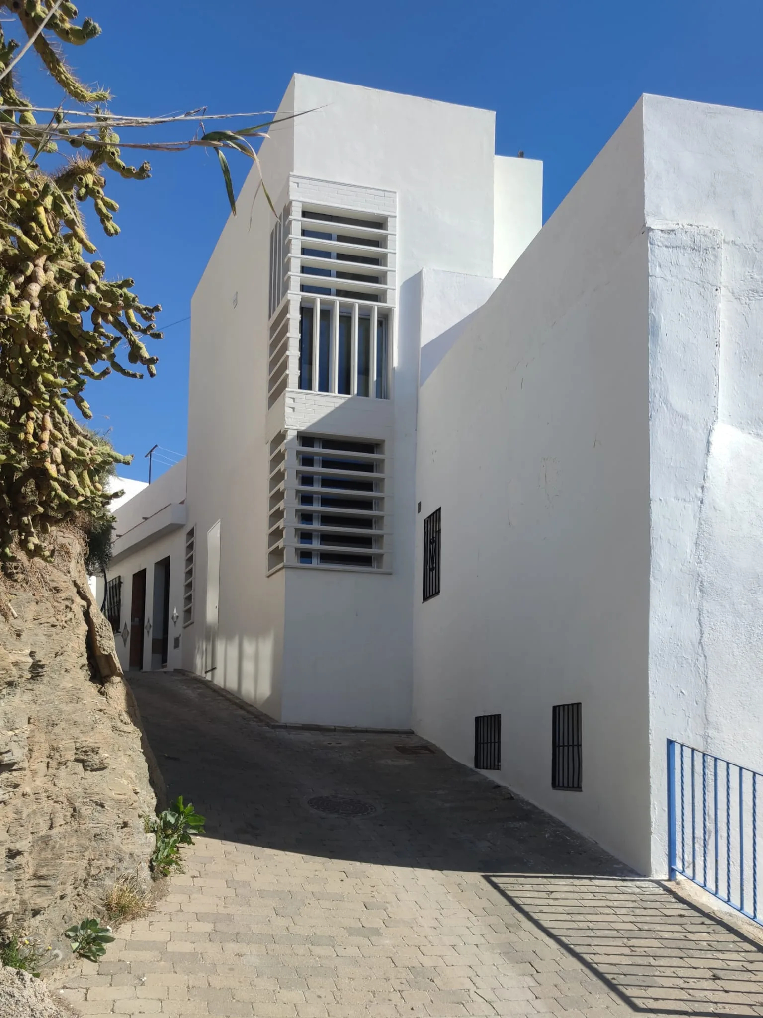 La vivienda se abre al este con una potente visión sobre el Peñón, el Castillo de Salobreña y el mar. Los grandes huecos se protegen con celosías de acero perforado con un trazado de origen islámico ya empleado en una vivienda anterior para los mismos propietarios. En la fachada oeste, los huecos se cierran con una celosía de rasillones pintados de blanco para conseguir la necesaria intimidad desde la calle Real.