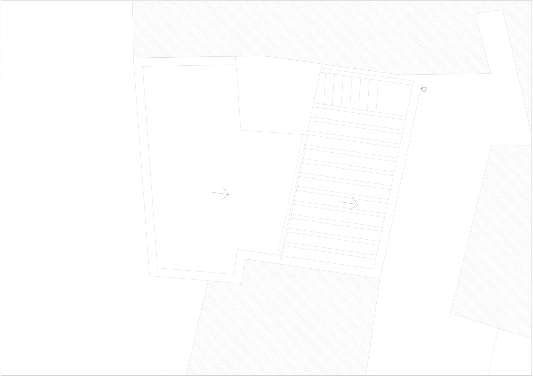 Debido al desnivel del solar, la vivienda tiene dos accesos a diferente cota desde cada una de las calles colindantes. En el nivel inferior se dispone un dormitorio con baño y una pequeña zona de estar orientada al este. En la planta intermedia, con acceso desde la calle Real, se encuentra otro dormitorio y sala de trabajo con aseo. En la planta segunda se sitúa la cocina con una terraza con pérgola orientada al este, y desde esta una escalera da acceso a la azotea, acondicionada con cubierta a un agua orientada al sur para la producción termosolar.