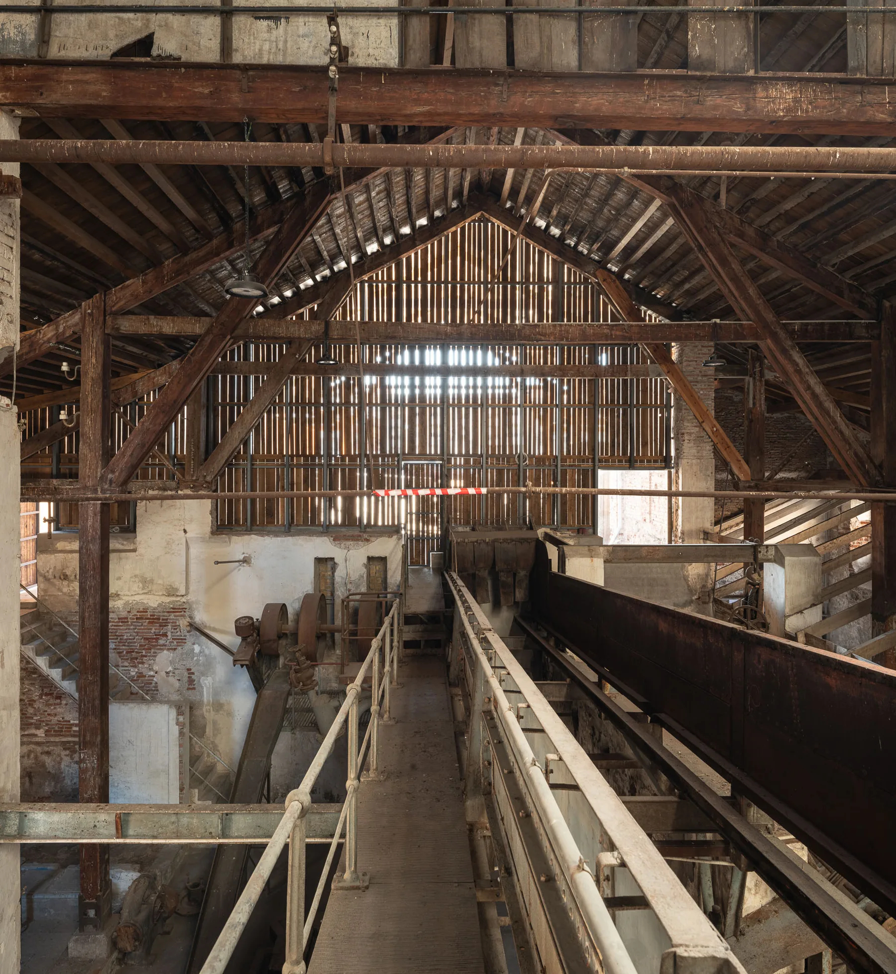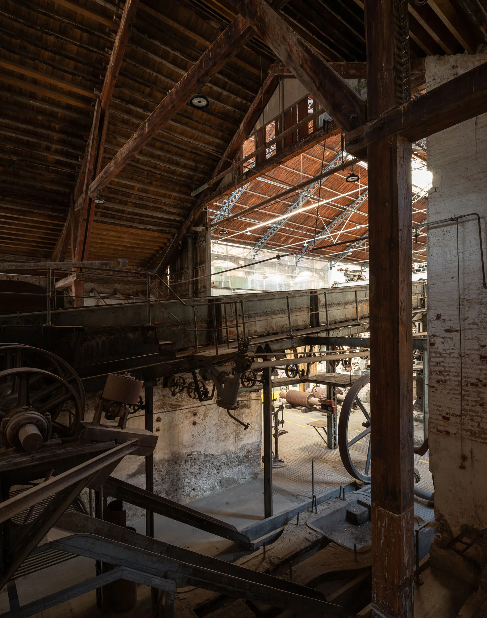 La propuesta plantea una estrategia basada en dos iniciativas para la apertura del Museo Industrial del Azúcar en la Nave del Tren de Molinos y su entorno en el recinto de la Fábrica del Pilar. La primera se centra en la intervención arquitectónica en la Nave del Tren de Molinos y naves anexas, incluyendo acondicionamiento de las naves, reparaciones de fachadas y cubiertas, recuperación de huecos, colocación de carpinterías e iluminación natural y artificial. Se han nivelado y regularizado las zonas pisables con bandas de color que dibujan los recorridos de visita, y se han repuesto elementos arquitectónicos y componentes de la maquinaria del Tren de Molinos para completar la lectura de su funcionamiento original.