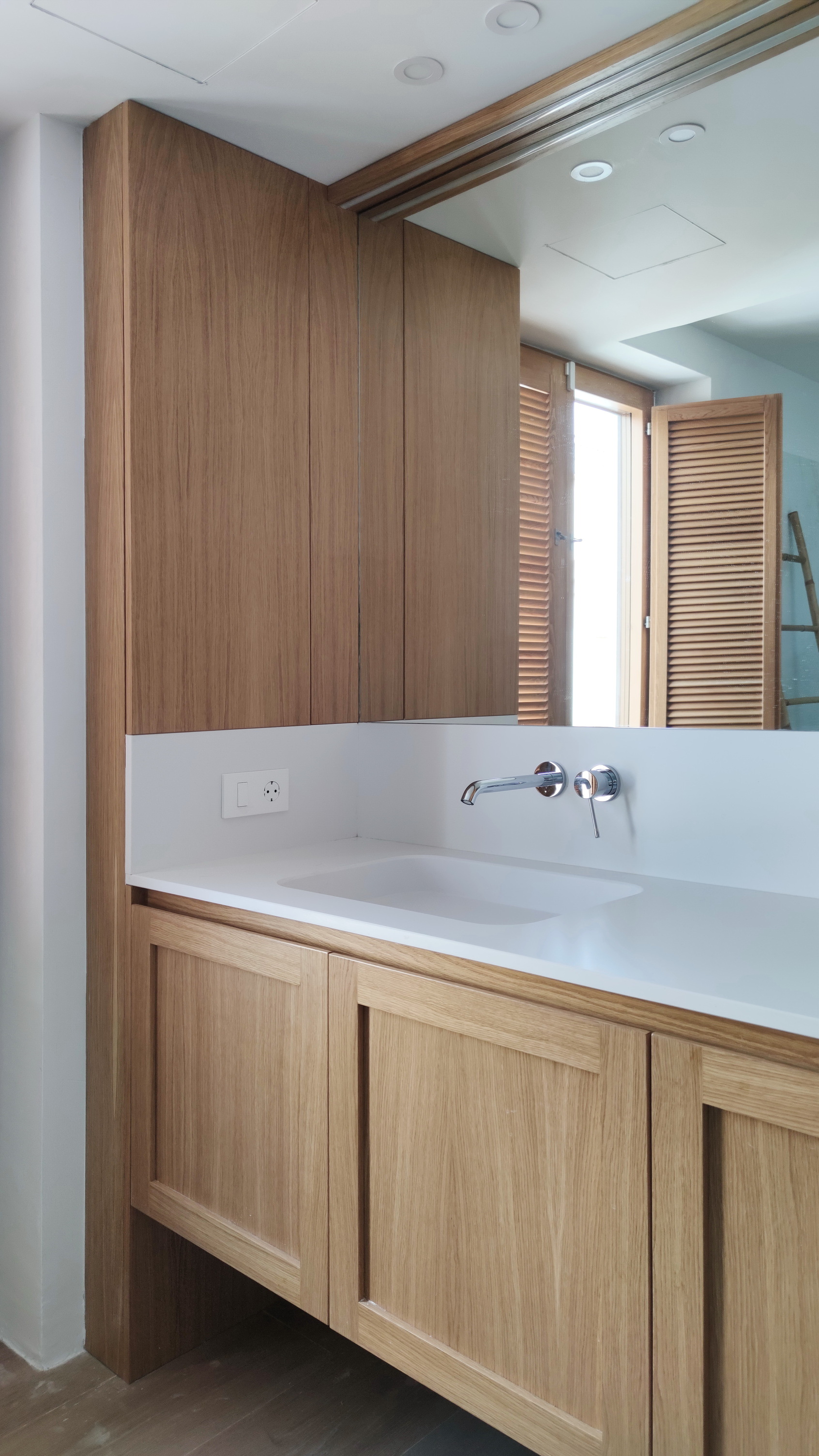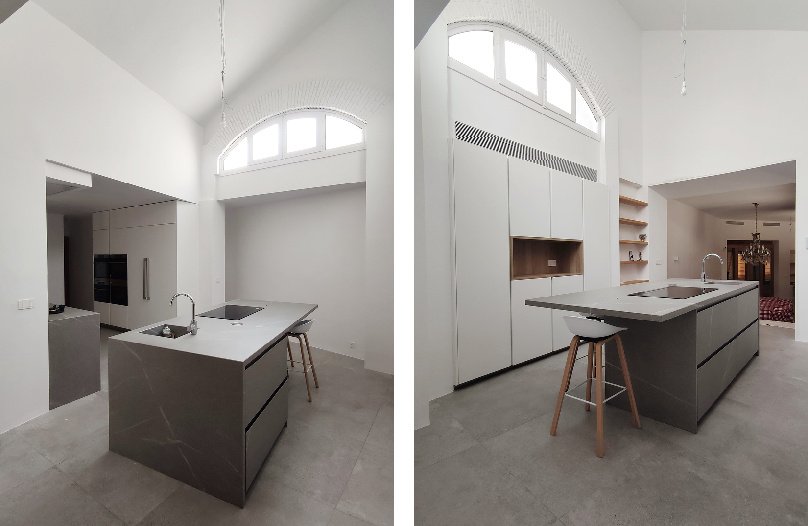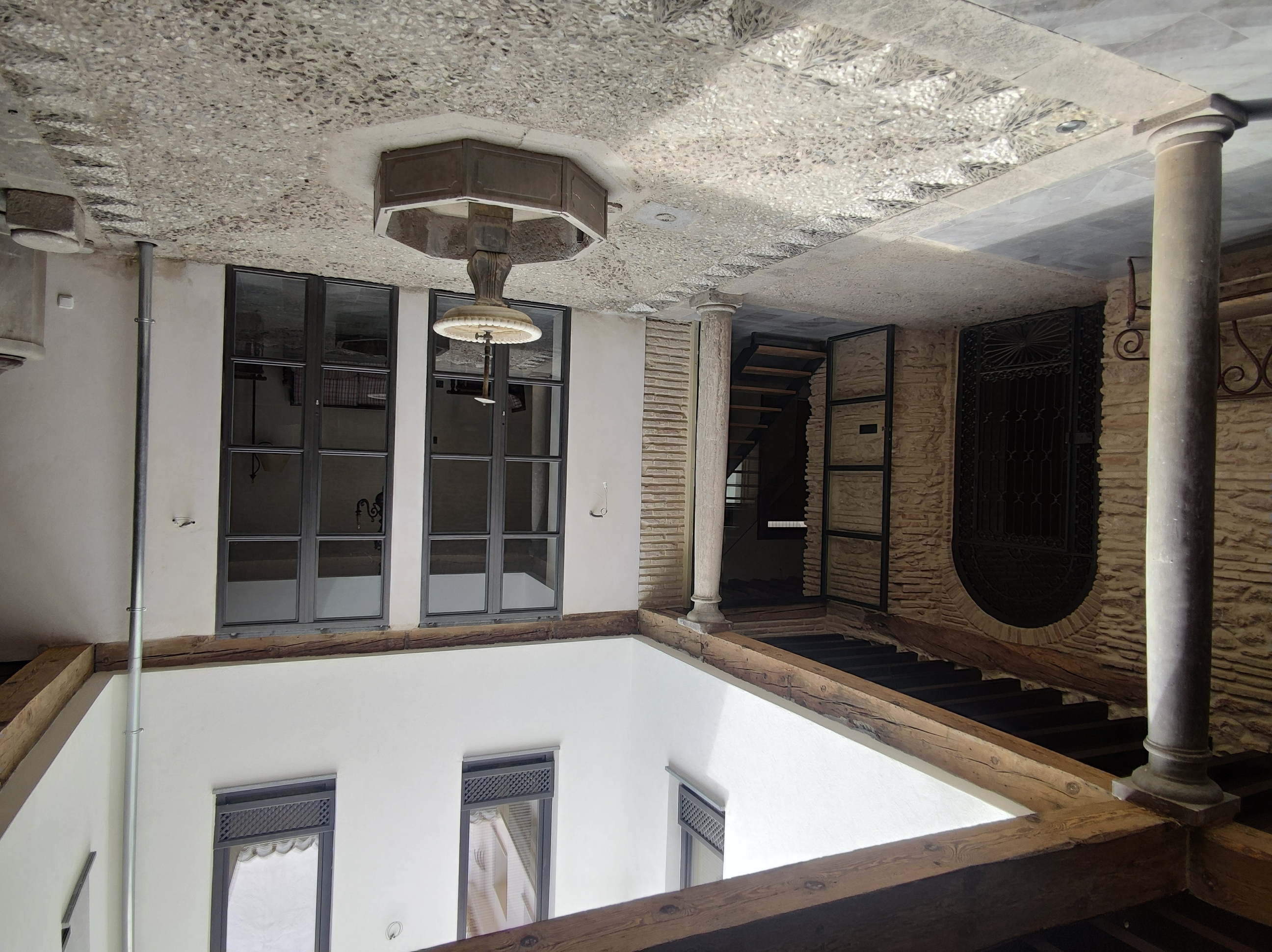 En planta primera y segunda se aborda una renovación integral incluyendo una redistribución espacial de las estancias, potenciando la galería circundante del patio y dotándolas de nuevos baños. Se vacía la crujía sur para conseguir una gran área estancial que se prolonga en la cocina que se traslada al final oeste de esta fachada sur, en la inflexión entre los dos cuerpos existentes. La intervención se completa con la renovación integral de carpinterías, acabados, e instalaciones, aunque se conserva una materialidad próxima a los orígenes de la casa. En los trabajos de conservación de paramentos del patio se encontró y se recuperó una estructura de madera existente de sustentación del muro perimetral dejándola vista en la cara interior e aislando el muro en la cara exterior.