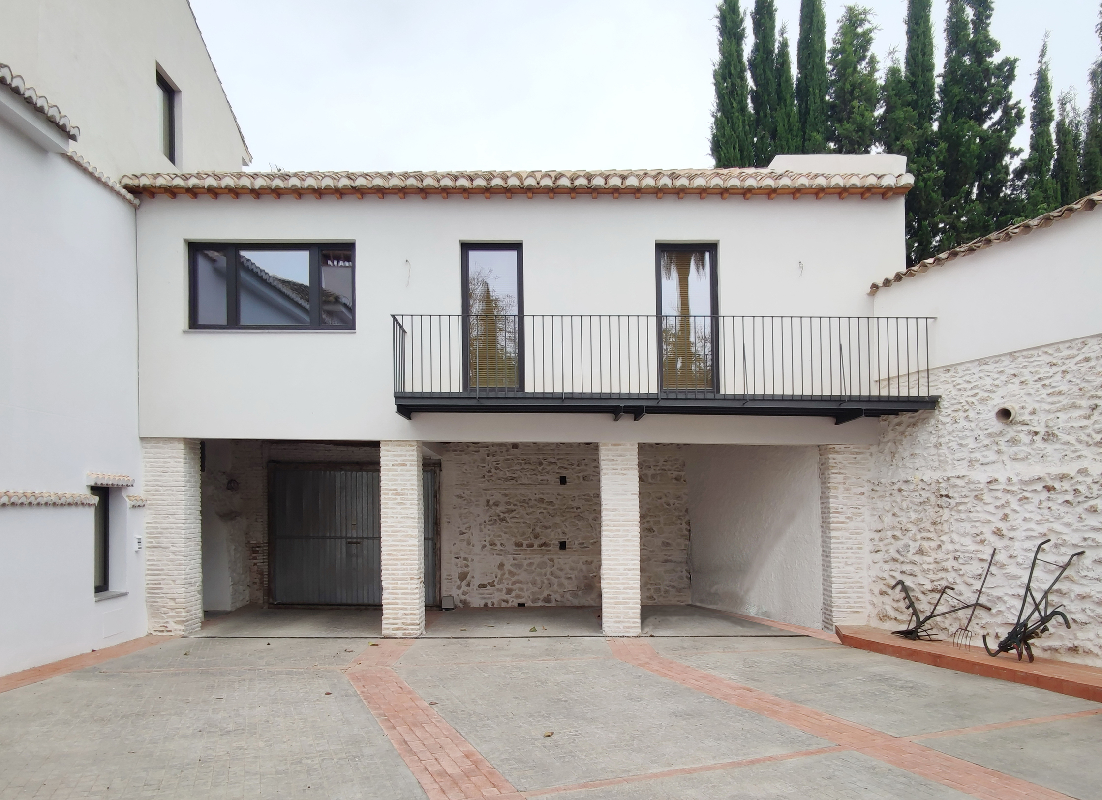 El proyecto aborda la rehabilitación de una casa patio y de las distintas construcciones aledañas existentes: almacenes de aperos, cuadras, graneros, patios de labranza y jardín –huerto en concordancia con la mejor tradición granadina. Se pretende integrar todo el conjunto como una nueva casa con carácter permanente. En la planta baja se conserva la atmosfera precedente, potenciando el patio como elemento articulador de todos los espacios y actividades. Un lugar más abierto y fresco con uso predomínate en periodos de bonanza climática. Para completar la operatividad se abre un nuevo ingreso desde el patio de labor con la casa, de esta manera ahora este patio recuperado servirá de aparcamiento y dispondrá de acceso directo al interior.