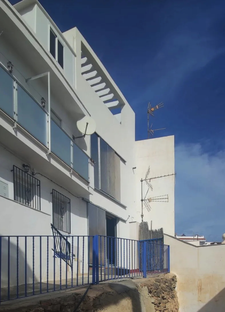 La vivienda se abre al este con una potente visión sobre el Peñón, el Castillo de Salobreña y el mar. Los grandes huecos se protegen con celosías de acero perforado con un trazado de origen islámico ya empleado en una vivienda anterior para los mismos propietarios. En la fachada oeste, los huecos se cierran con una celosía de rasillones pintados de blanco para conseguir la necesaria intimidad desde la calle Real.